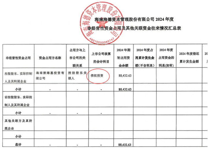 根据海南证监局要求,海德股份进行自查发现,截至2024年12月31日被控股股东或其关联方占用的资金余额为8.84亿元,2025年4月24日已经收回前述占款。